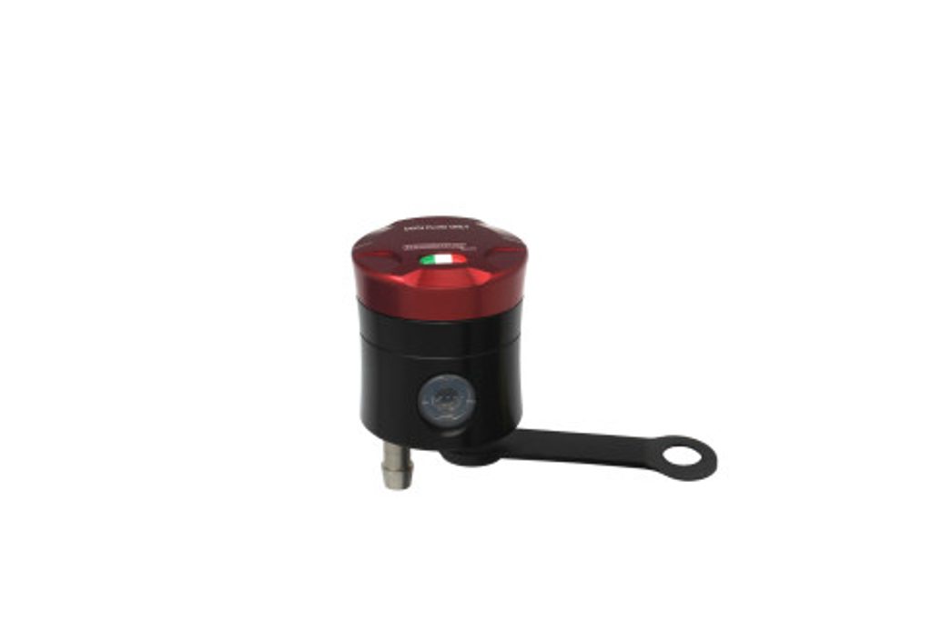 Accossato CNC-worked clutch fluid reservoir, capacity of 15 cm3, vertical oil spill. Straight braket provided. You can choose the colour match of the