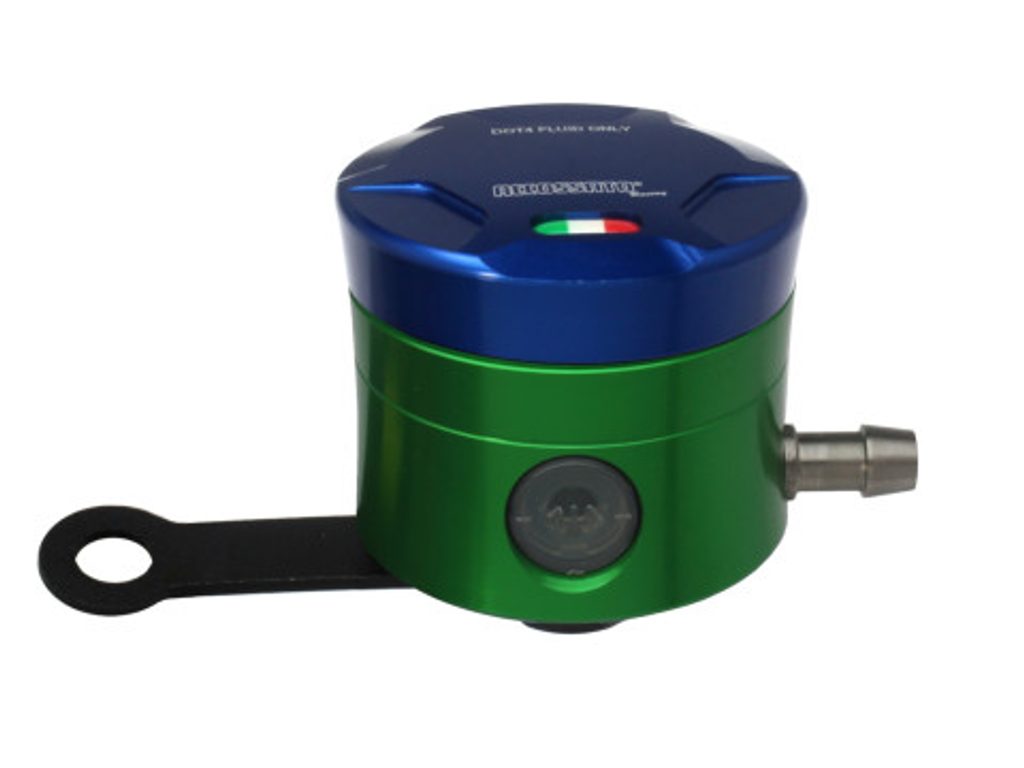 Accossato CNC-worked brake fluid reservoir, capacity of 25 cm3, horizontal oil spill. Straight braket provided. You can choose the colour match of the