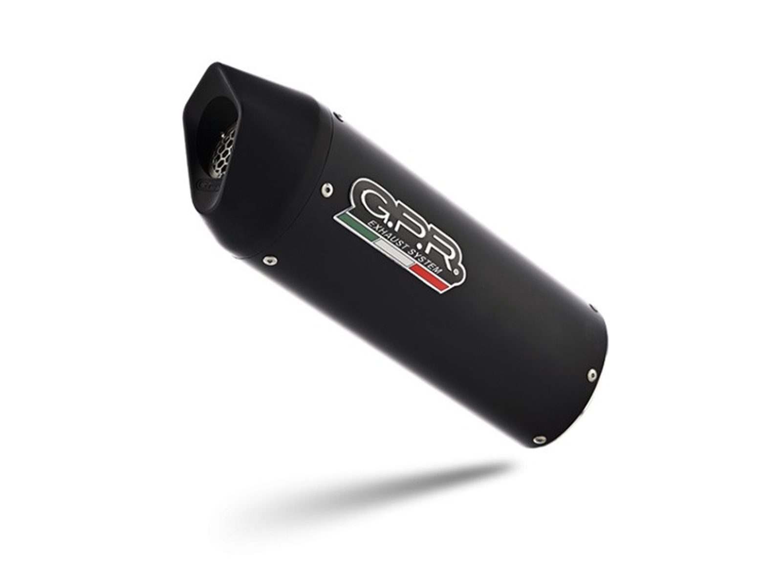 GPR's Furore Nero silencer has a black aluminum body, with avional caps made through CNC machining. It has a ceramic finish that withstands high temperatures, with an elliptical shape that measures 90mm x120mm.