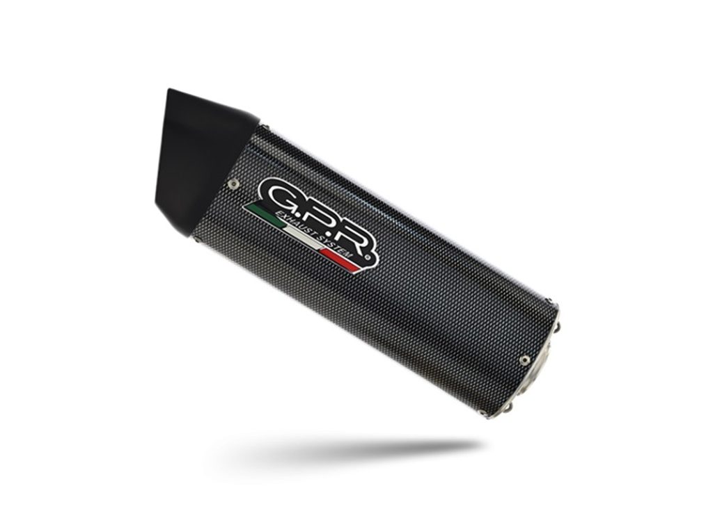 GPR's Furore Poppy silencer has a carbon look, stainless body and has been developed with a production process that produces zero impact to the environment. It has an oval shape with a diameter of 120MM, with avional bottoms produced by CNC machining.