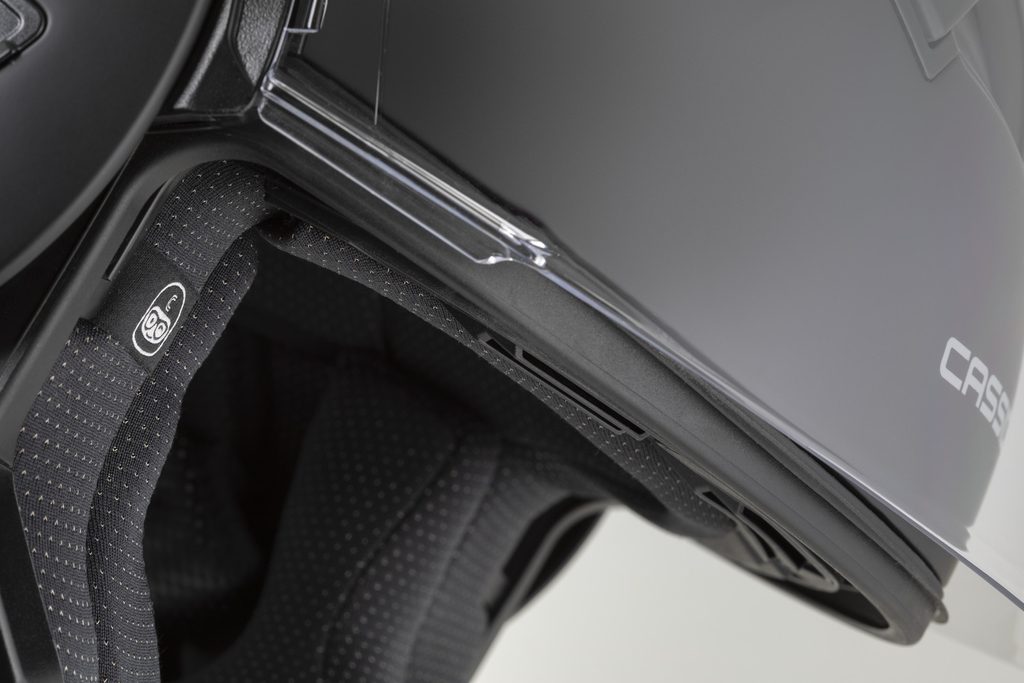 • Dual homologation ECE 22.06 P/J for both open-face and full-face use, with the option to lock the flip-up section in the open position using a safety latch.