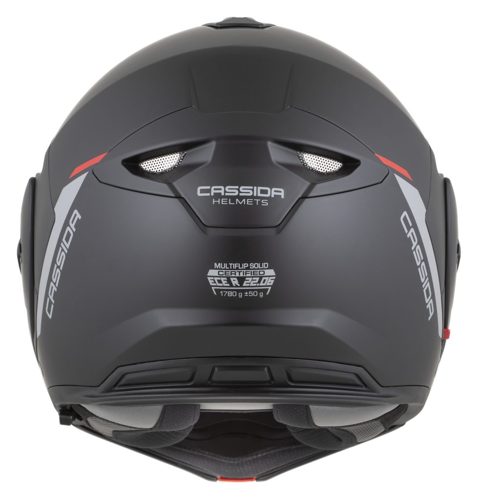 • Dual homologation ECE 22.06 P/J for both open-face and full-face use, with the option to lock the flip-up section in the open position using a safety latch.