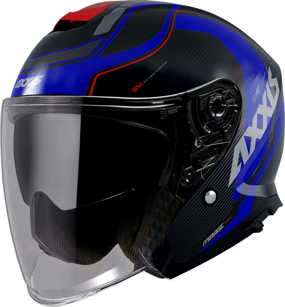 Axxis Jet Mirage SV, available with a new sunglass system. Guided by cable, which provides greater smoothness. Perfect screen adjustment. The mechanism of the base pushes against the rubber profle guaranteeing an optimum seal. Finished in a fange that avoids turbulences. The best technology currently available on the market. ECE certifcation 22.05. Designed for use with glasses.