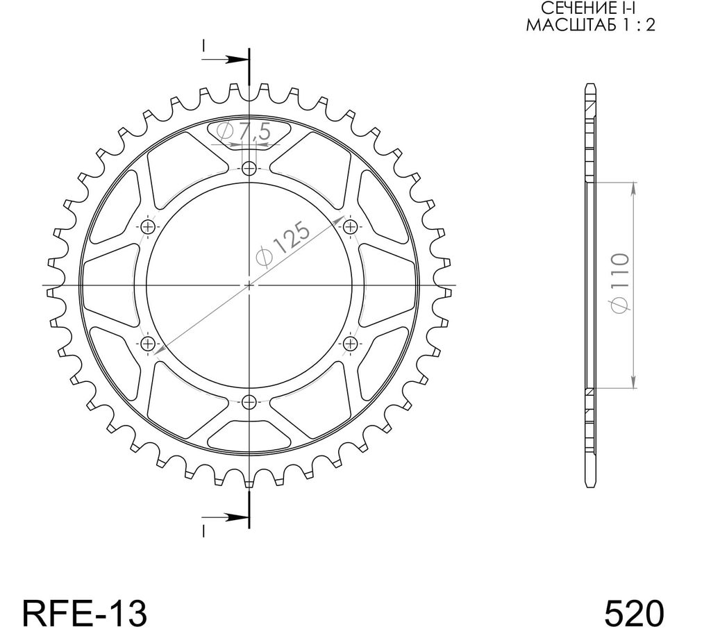 Lančenik zadnji SUPERSPROX RFE-13:41-BLK Crni 41T, 520