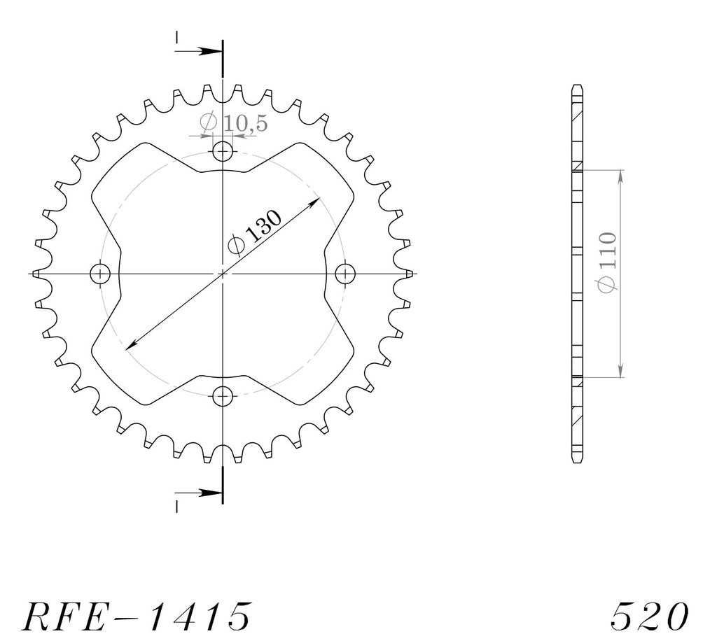Lančenik zadnji SUPERSPROX RFE-1415:38-BLK Crni 38T, 520