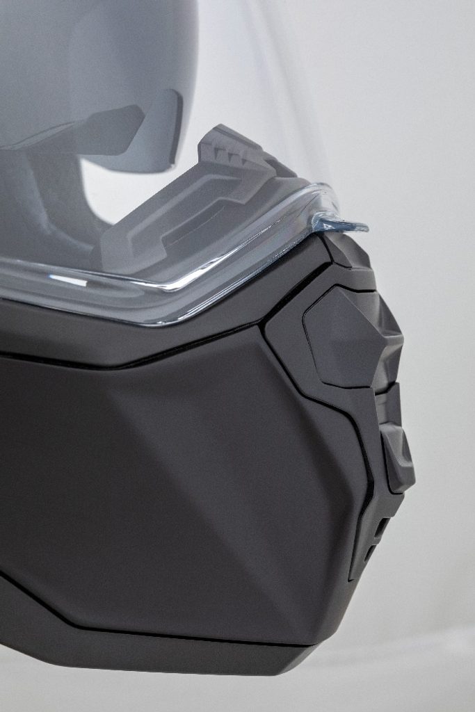 • Helmet can be configured with a peak and no visor, or as a full-face helmet without the peak