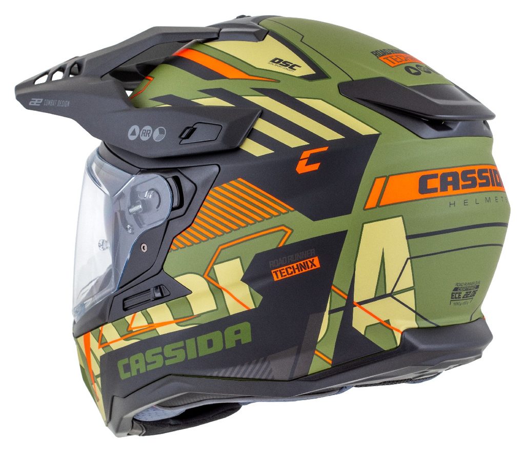 Motocross Helmet CASSIDA ROAD RUNNER TechniX green matt/ black/ orange/ grey/ black matt peak M