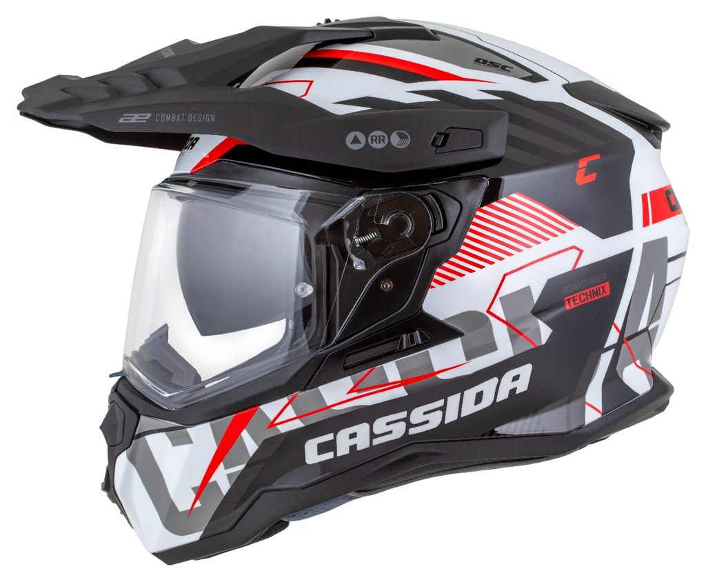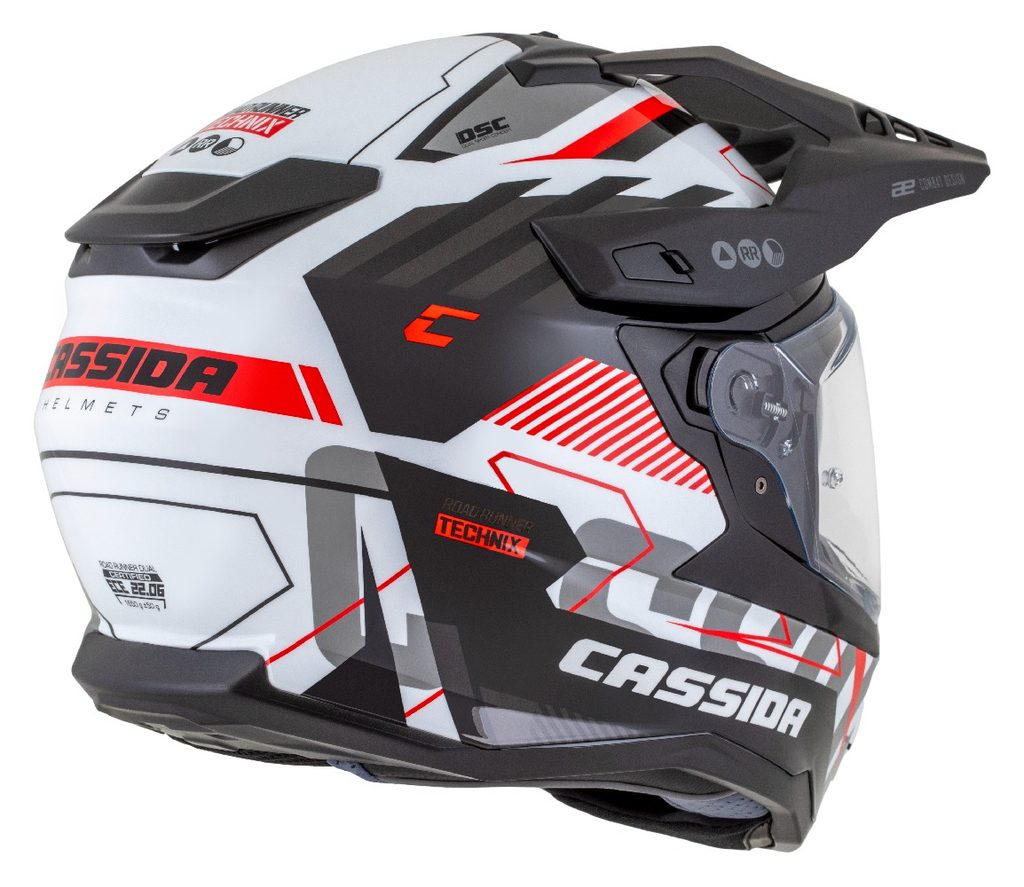 Motocross Helmet CASSIDA ROAD RUNNER TechniX white/ black/ red/ grey/ black matt peak XL