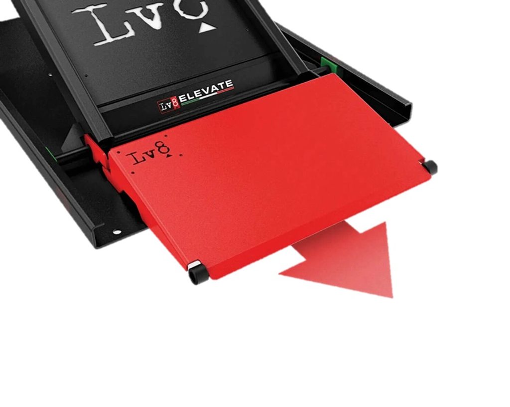 The hydraulic system with double cylinder equipped with a self- lubricating system for the seals allows infinite height adjustments of the LV8 NANO motorcycle lift ensuring the best reliability both when going up and down, without having to manually insert or release mechanical levers.