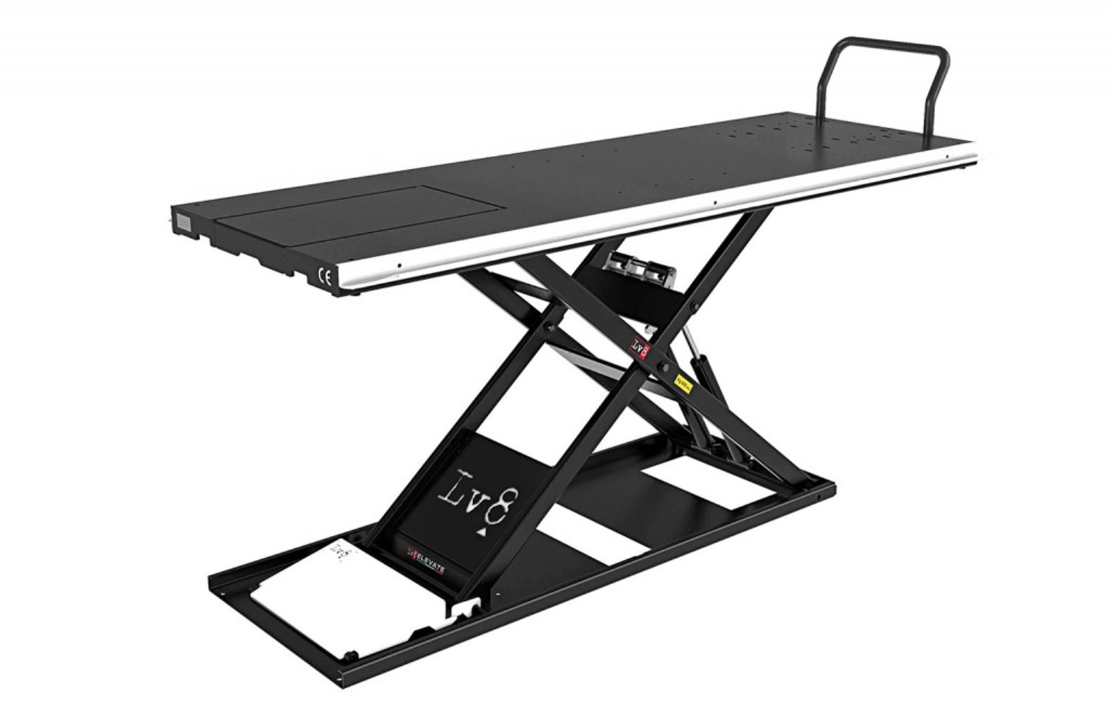 Thanks to its being only 7,5 cm (3”) high when closed and its retractable ramp it is the lowest and most safe motorcycle lift in the world.