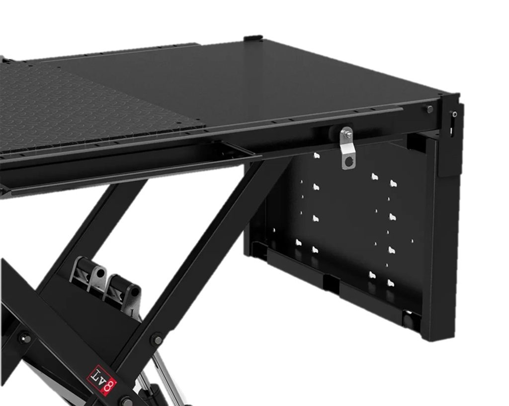 The Nano 600 Split is provided with tilting front split, removable gate, sliding tools holders kit, antiskid plate and sliding hooks for belts fastenings. Multifunctional accessories for a high-performance motorcycle lift.