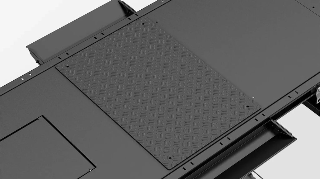 The Nano 600 Split is provided with tilting front split, removable gate, sliding tools holders kit, antiskid plate and sliding hooks for belts fastenings. Multifunctional accessories for a high-performance motorcycle lift.
