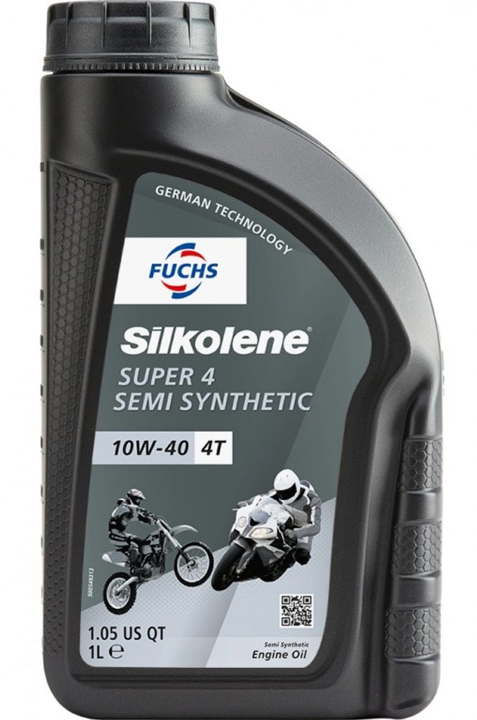 SILKOLENE SUPER 4 grades are semi synthetic 4-stroke engine oils designed for use in both On- Road and Off-Road motorcycles. They protect the engine and transmission with advanced additive chemistry from start-up to full power. SILKOLENE SUPER 4 grades are blended with a high performance additive system incorporating detergents, dispersants and load carrying agents to give excellent engine cleanliness and minimum component wear. SILKOLENE SUPER 4 uses a balanced formulation to ensure correct operation of oil immersed clutches and other drive line components.