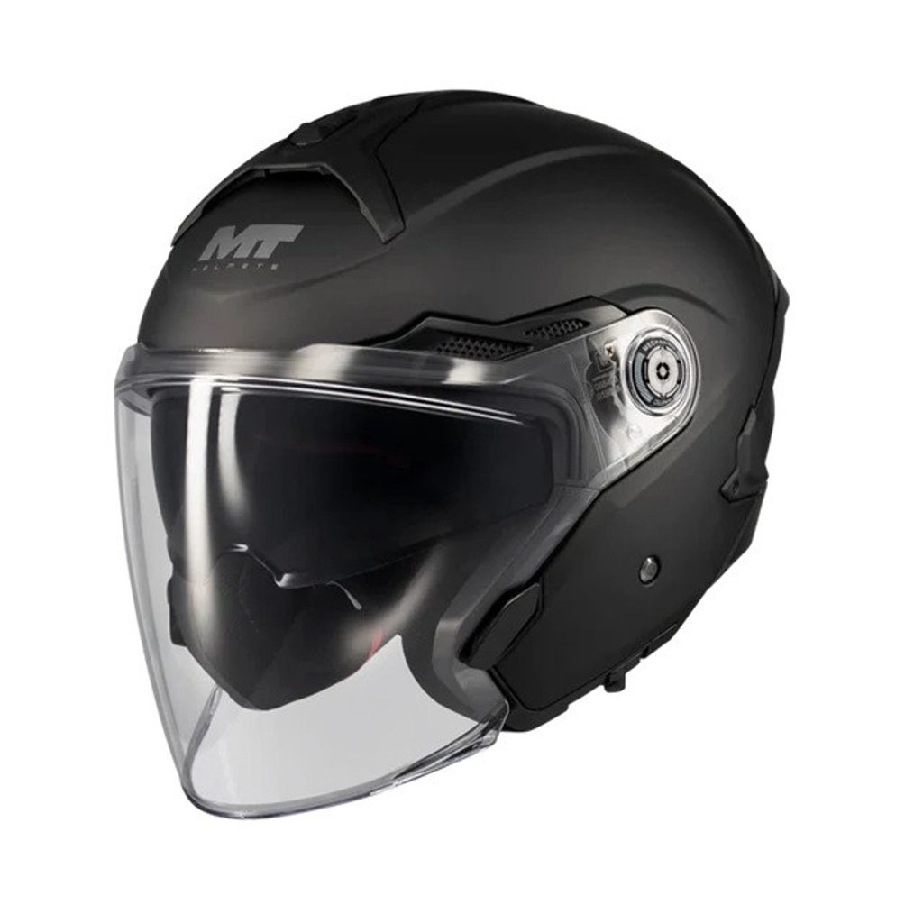 • It’s equipped with a Sunvisor and MT-QVSS fast screen-change system—a technology developed by MT Helmets and now featured in their better-equipped models.