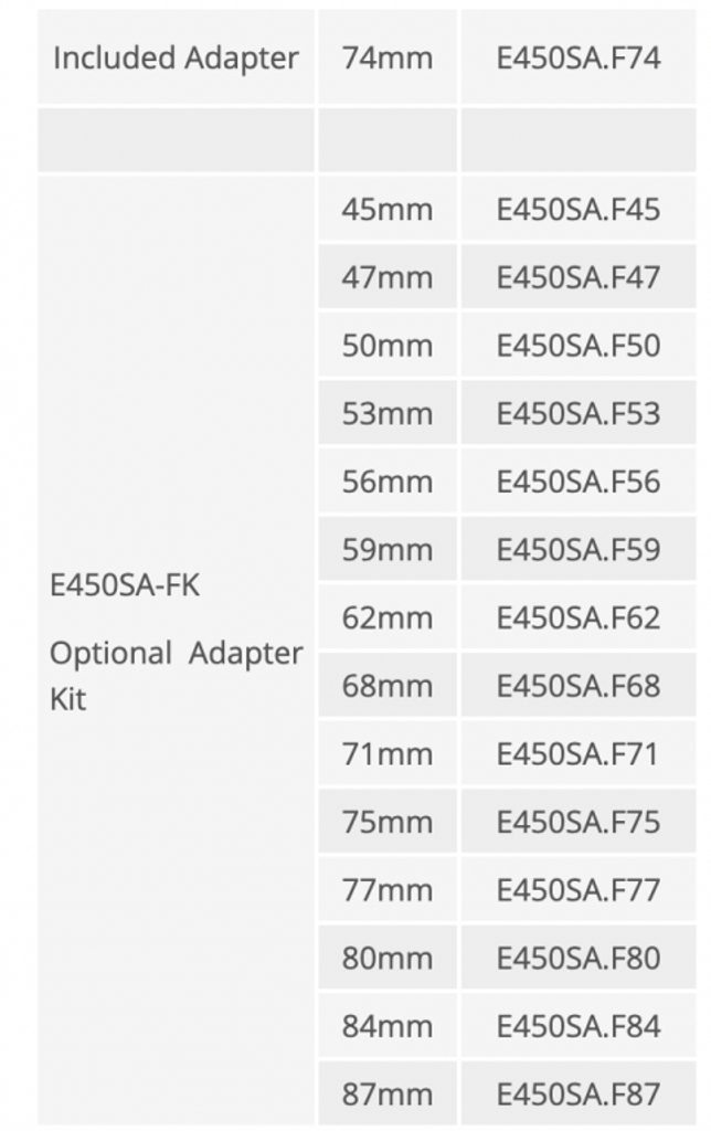 Kit of 14 optional adapters of different diameters for the shock-absorber disassembler (code 990.E450SA).