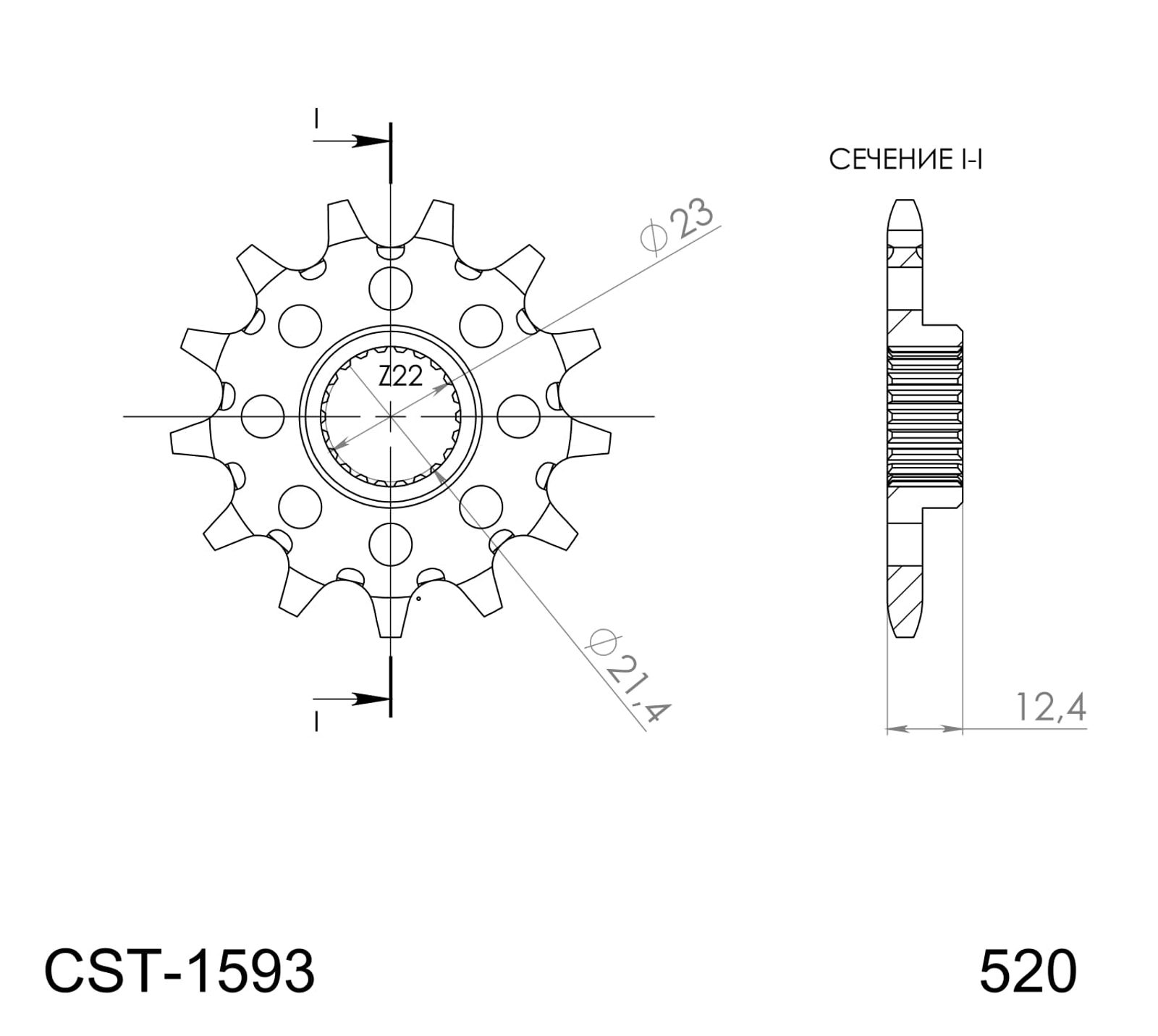 Prednji lančanik SUPERSPROX CST-1593:14 14T, 520