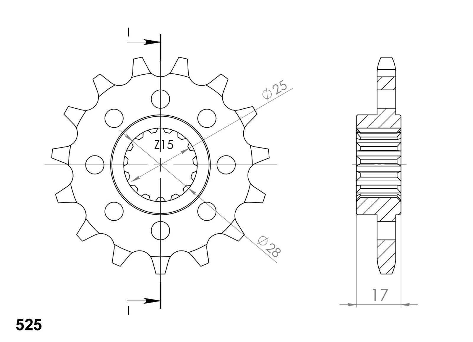 Stronger teeth for up to 10% longer chainkit lifetime. Front sprocket 15T, chain 525. Više informacija