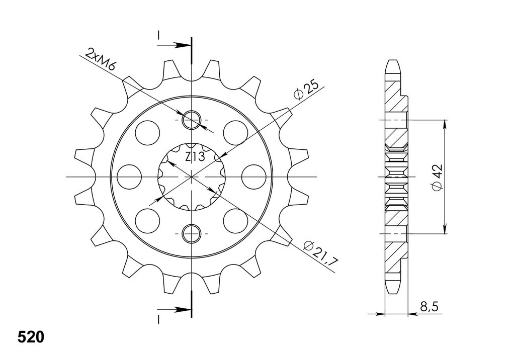 Every sprocket has weight reduction, with radial holes or radial slots (Forged models only) .
