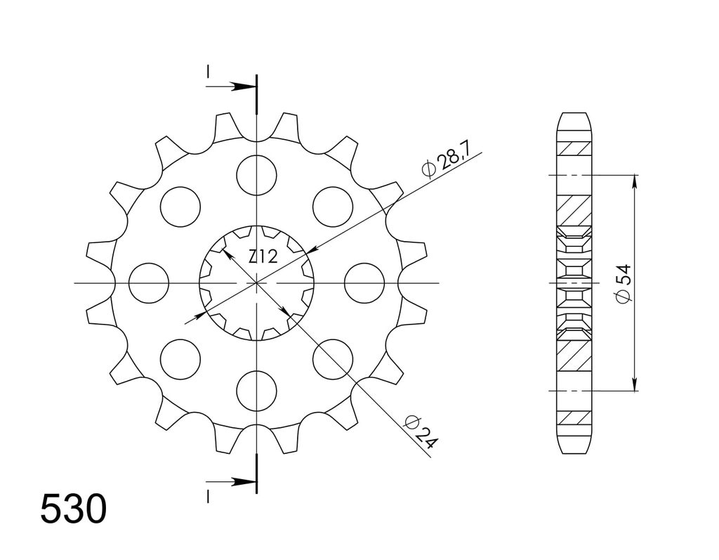 Every sprocket has weight reduction, with radial holes or radial slots (Forged models only) .