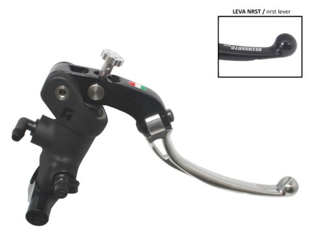Accossato Radial Brake Master Cylinder For Motorcycles with 25,4mm diameter handlebarIn Forged Aluminium Black Anodyzing 19 x 18. The lever is colourf