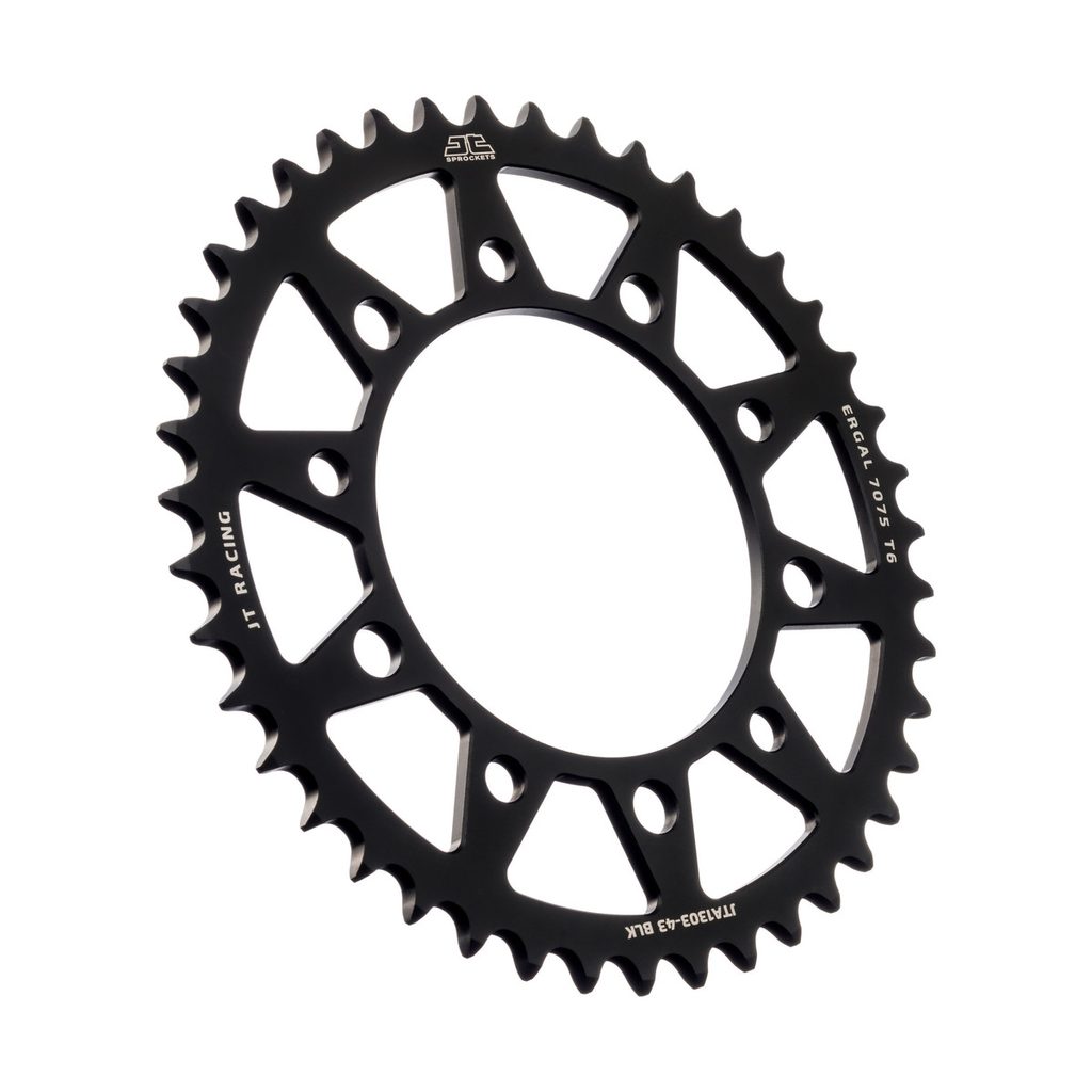 JT sprockets are made using only the best available materials. Aviation-grade 7075-T6 aluminium alloy for lightweight competition sprockets, SCM420 chromoly steel alloy for front sprockets, and we are the only sprocket manufacturer using the ultra-durable high carbon C49 steel for rear sprockets.