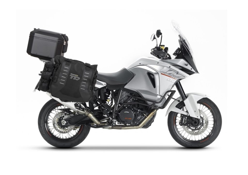 Set of SHAD TERRA TR40 adventure saddlebags and SHAD TERRA aluminium top case TR55 PURE BLACK, including mounting kit SHAD KTM 1290 SUPERADVENTURE