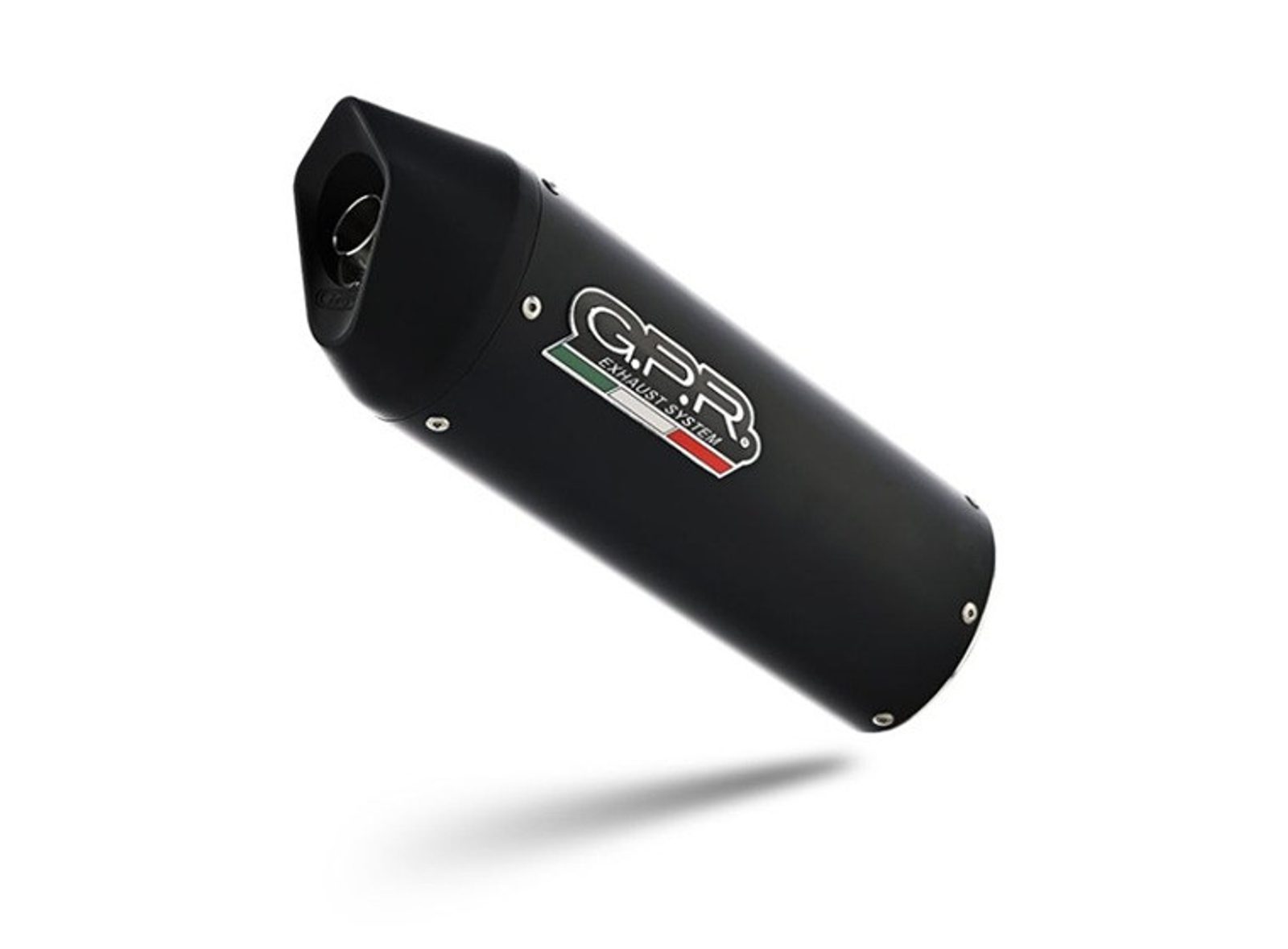 GPR's Furore Nero silencer has a black aluminum body, with avional caps made through CNC machining. It has a ceramic finish that withstands high temperatures, with an elliptical shape that measures 90mm x120mm.