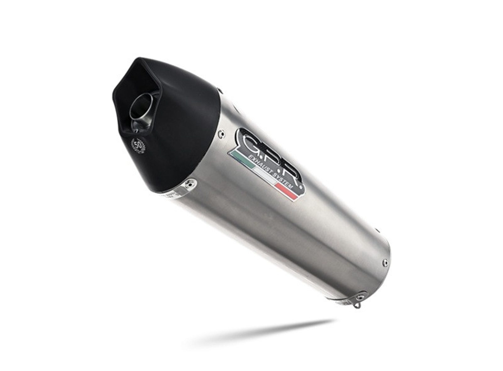 GPR's New Grand Prix Evo Titanium - the Silencer is conical, with a special shape starting from a diameter 90mm to arriva at 130mm of circonference and lenght that depend from the motorbike of destination. It has a sleever made in titanium realized with natural color, black endcap made through CNC machining with pentagonal exit and dbkiller.